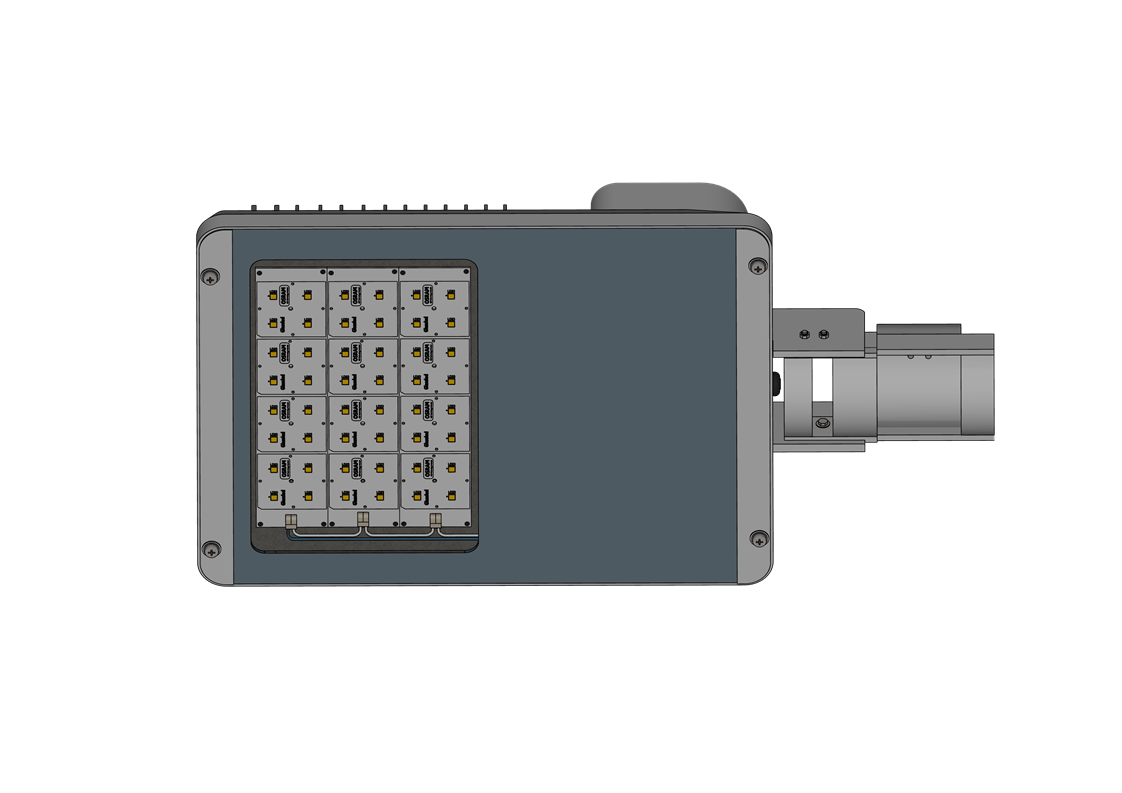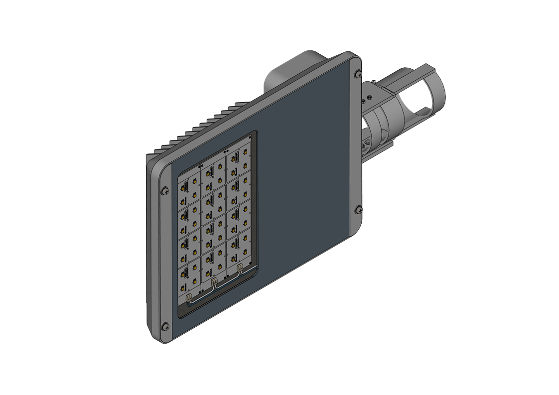 LUMINÁRIA PÚBLICA COM ALOJAMENTO INTEGRADO PARA O CONTROLADOR EM LIGA DE ALUMÍNIO SAE-305 INJETADO. POSSUI PARAFUSOS, PORCAS E ARRUELAS EM AÇO INOX. INCLUI BASE PARA PÉTALA COM REGULAGEM DE ÂNGULO.
