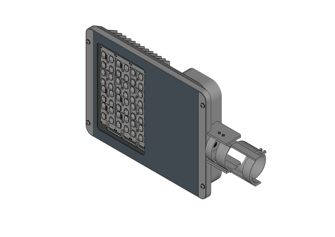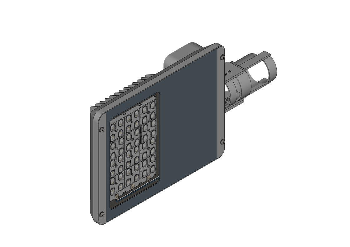 LUMINÁRIA PÚBLICA COM ALOJAMENTO INTEGRADO PARA O CONTROLADOR EM LIGA DE ALUMÍNIO SAE-305 INJETADO. POSSUI PARAFUSOS, PORCAS E ARRUELAS EM AÇO INOX. INCLUI BASE PARA PÉTALA COM REGULAGEM DE ÂNGULO.
