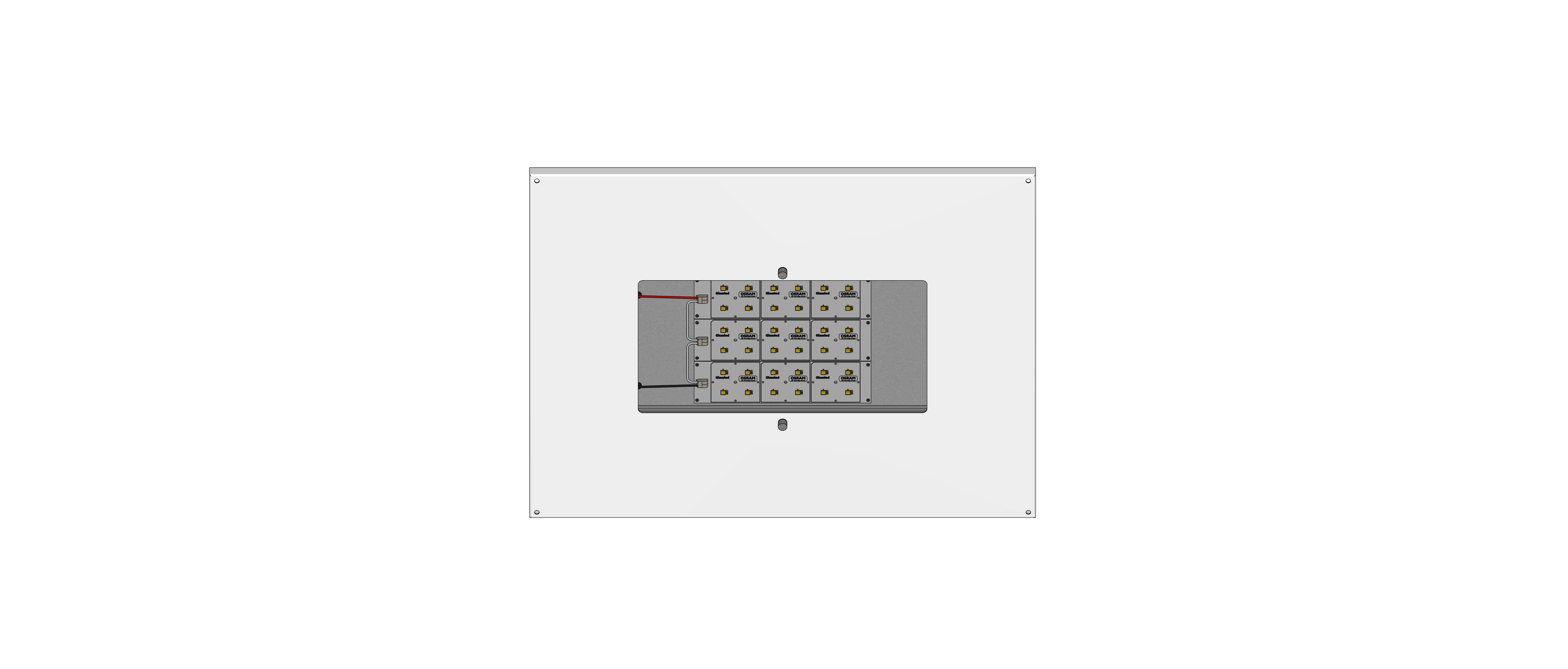 LUMINÁRIA RETANGULAR DE EMBUTIR DE ALUMÍNIO, COM PARAFUSOS, PORCAS E ARRUELAS EM AÇO INOX. ACABAMENTO EM PINTURA ELETROSTÁTICA TEXTURIZADA.