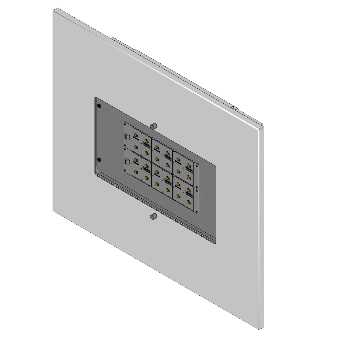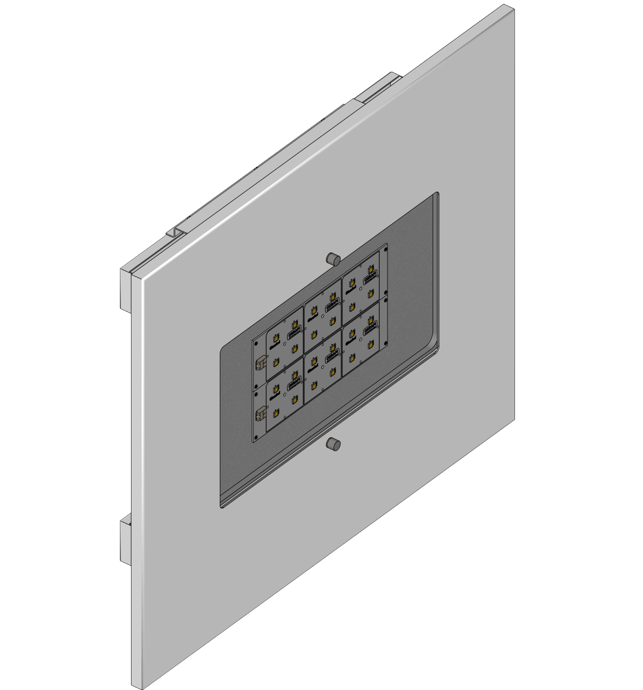 Luminária retangular de embutir de alumínio em chapa dobrada, com