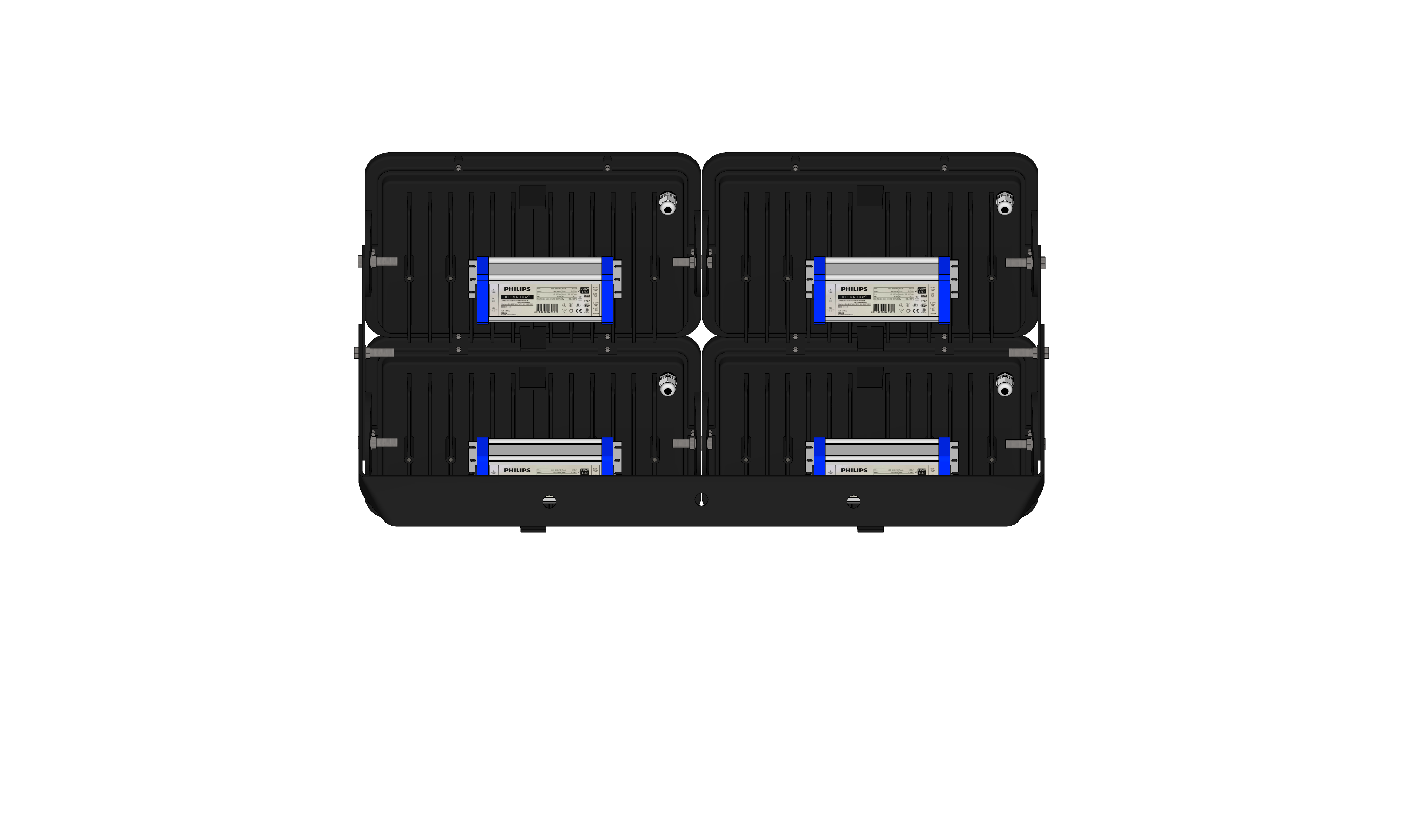 REFLETOR EM LIGA DE ALUMÍNIO SAE-329 FUNDIDO A BAIXA PRESSÃO, PLACA DE LED SMD, PARAFUSOS, PORCAS E ARRUELAS EM AÇO INOX, LENTE PLANA DE CRISTAL TEMPERADO 4MM E ACABAMENTO EM PINTURA ELETROSTÁTICA TEXTURIZADA E LENTE ÓPTICA EM PMMA COM ADITIVADO DE RAIOS UTRAVIOLETA UV E EFICIÊNCIA DE 94%.