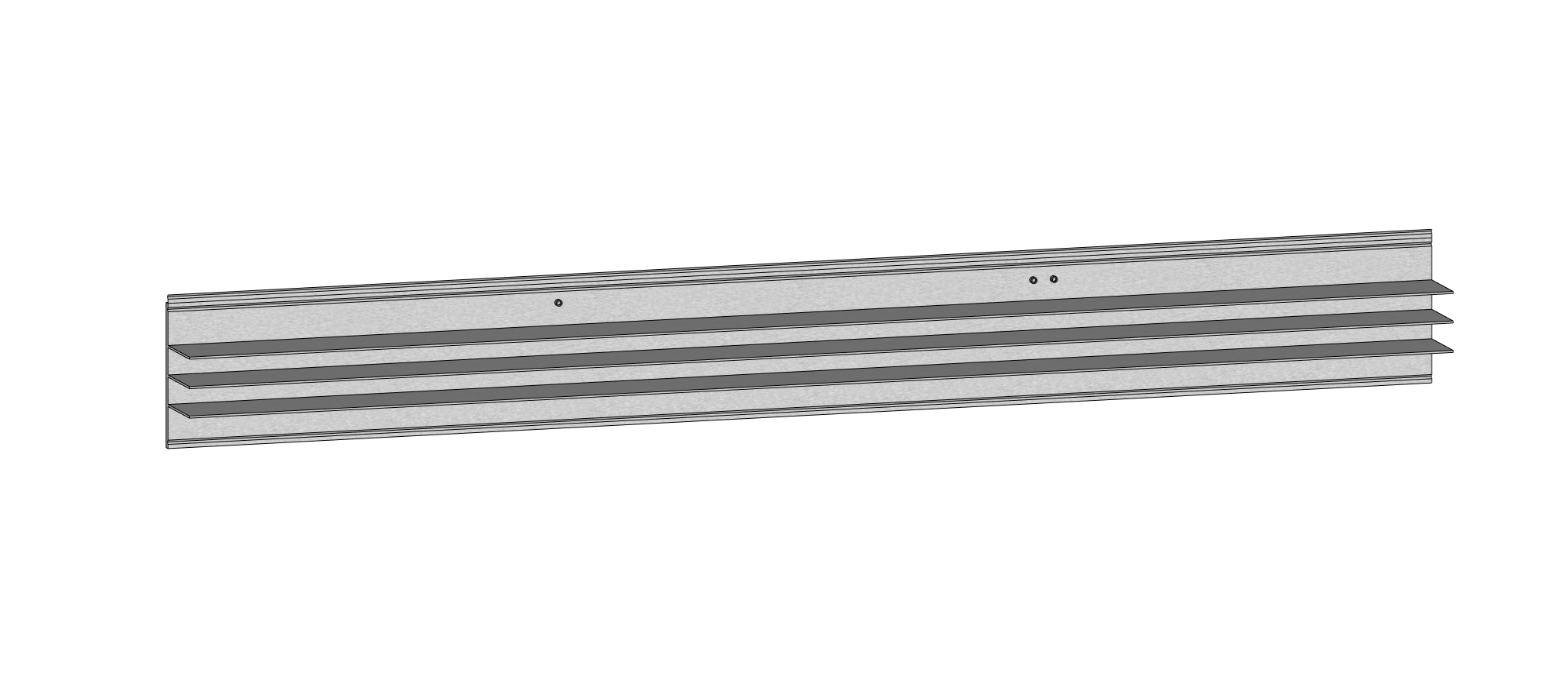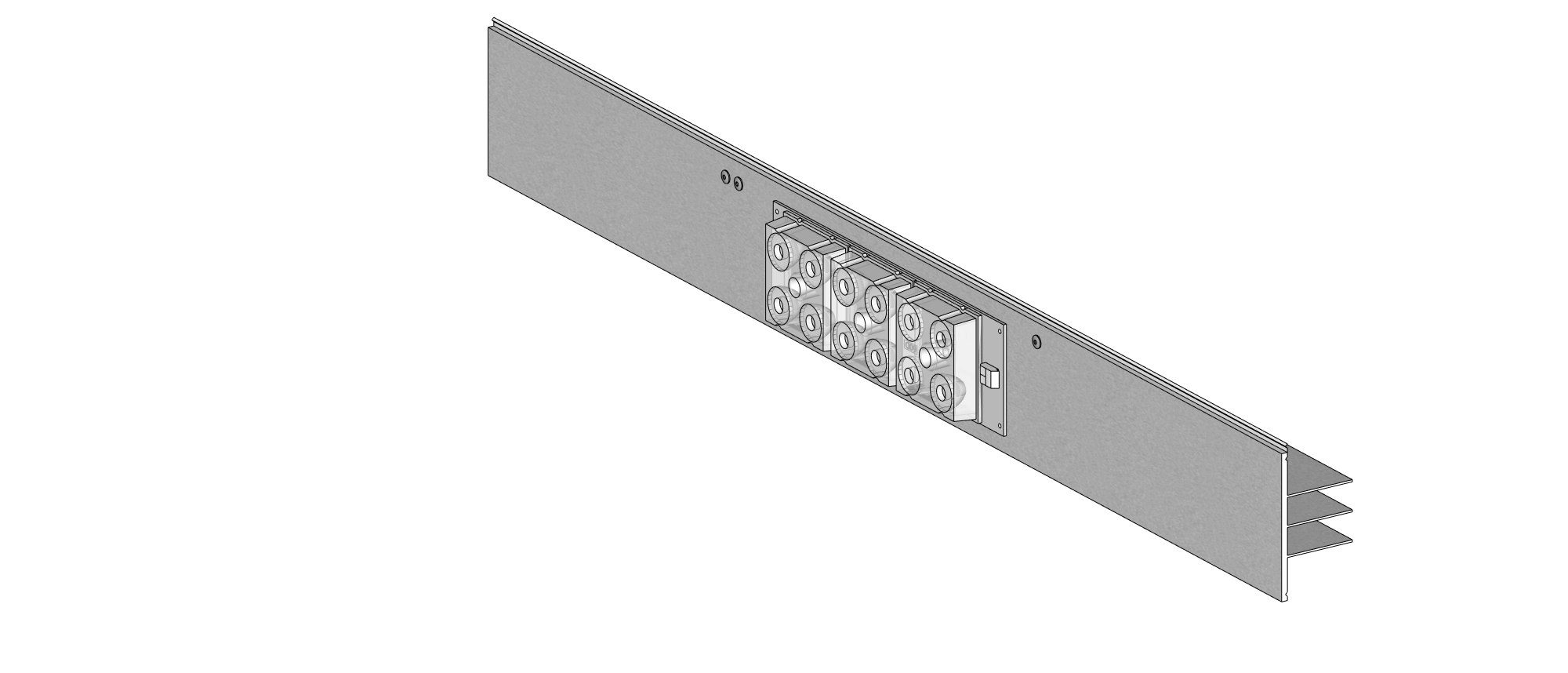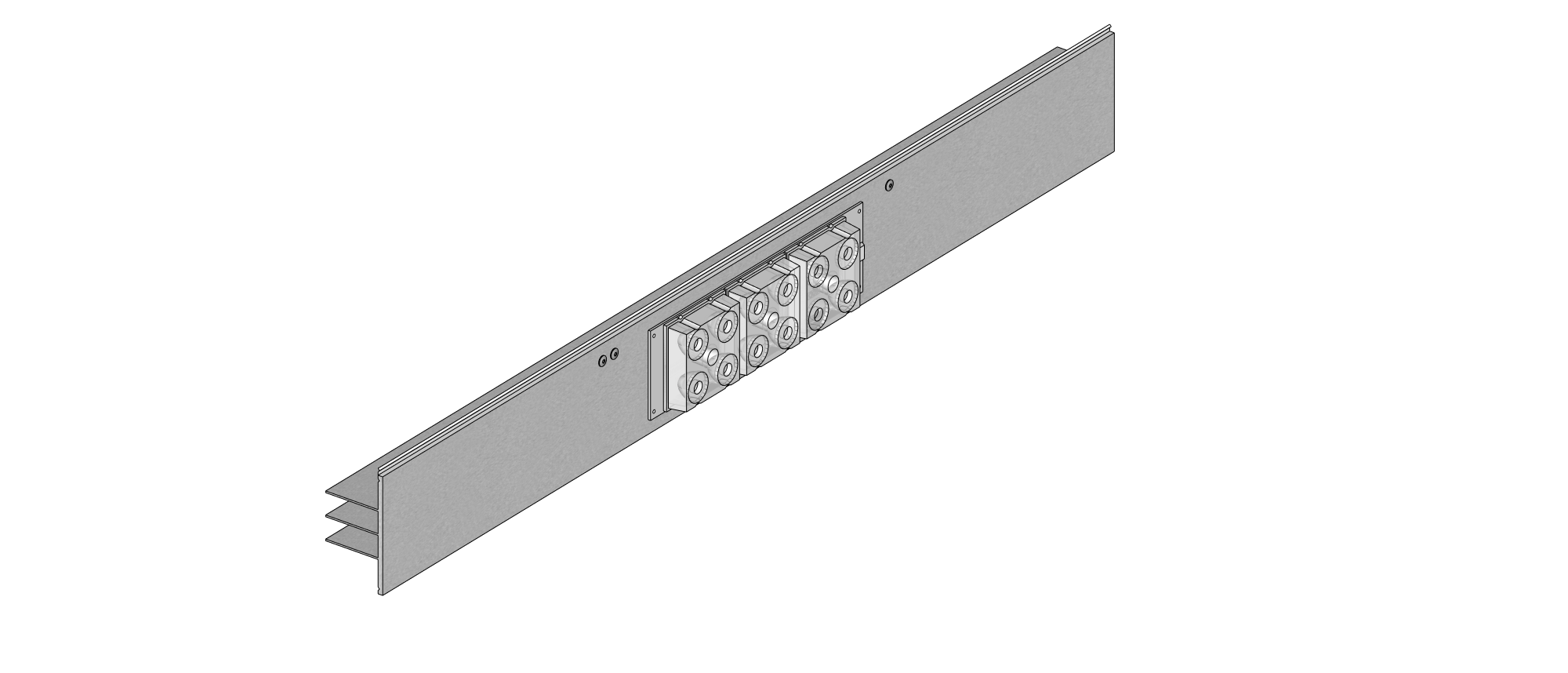 Luminária em liga de alumínio 6060 extrudado e lente em policarbonato. parafusos, porcas e arruelas em aço inox e bicromatizado e acabamento natural.